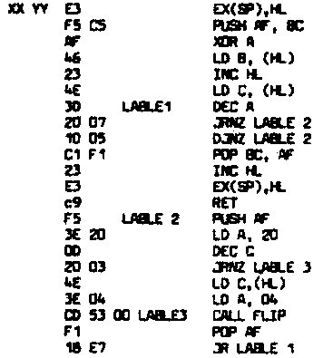 CD ist der hexadezimale Code für den CALL-Befehl (Unterprogrammaufruf). Dann folgt die Startadresse des Unterprogrammes mit XX = High Byte der Startadresse YY – Low Byte der Startadresse