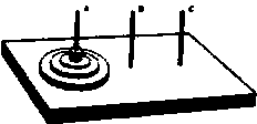 Dieses Problem ist Ihnen vielleicht schon bekannt. Es geht darum, den aus vier Scheiben bestehenden Turm von A nach C zu übertragen, wobei immer nur eine Scheibe bewegt werden darf und immer nur eine kleinere Scheibe auf einer größeren Scheibe liegen darf. Das ganze ist mit einer minimalen Zahl Schritte zu machen ? Wie sieht die Lösung für beliebig viele Scheiben aus ?