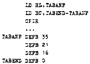 Der Assenbler dokumentiert seine Arbeit in der Assembler-Liste. Auf der nächsten Seite ist ein (nicht sehr sinnvolles) Programm aus den Beispielen zusammengesetzt (die Liste wurde von ASM/EPROM V1.1 auf einem Nascom-1 erzeugt und mit dem Programmpaket „TTY“ auf einem 5-Kanal-Fernschreiber ausgedruckt).