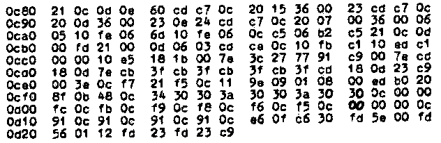 dann das Programm bei Adresse 0C80. Das Programm ist für 2 Mhz