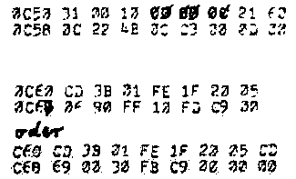 Lothar Bayer aus München hat die lange Ausführungszeit des TINY BASIC-Programmes nicht gefallen und er hat für das Journal den Algorithmus des vorgestellten TINY BASIC Programmes in Maschinensprache formuliert. Der Erfolg ist durchschlagend: Das Maschinenprogramm läuft im Vergleich zum BASIC-Programm um einen Faktor 400 schneller ! Es braucht für alle möglichen 92 Lösungen nur ca. 9 Sekunden Rechenzeit. Es mußte sogar eine Verzögerungsroutine in die Ausgabe eingebaut werden, damit man sich die Lösungen überhaupt anschauen kann.