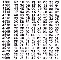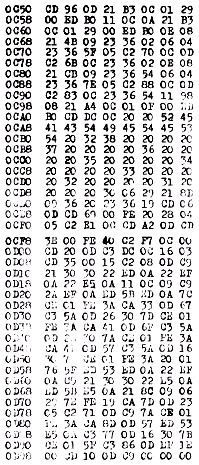 Da es uns sehr viel Mühe gekostet hat, bis das Basic endlich arbeitete, hatten wir Angst, daß die Cassette einmal beschädigt werden könnte.Wir besitzen jedoch (wie viele andere auch) keinen Drucker. Daher haben wir das gesamte Programm photographiert. Beim ‚T‘ Kommando würde man hierzu 86 Bilder benötigen. Wir haben daher ein Programm geschrieben, das den Bildschirm mit 15 Zeilen zu je 12 Speichereinheiten füllt. Wenn man Adresse 463F-0C in 0E und 4673-68 in A4 umändert, lassen sich die Inhalte von 14 Speichereinheiten pro Zeile darstellen. Das ergibt beim 8k Basic eine Platzersparnis von 6 Seiten.