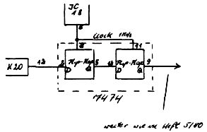 Einfacher als druch Nachschalten von 8 ExOr Gattern läßt sich das Problem durch eine Verzögerung mit einem 7474 lösen, was sich in meinem System schon seit einiger Zelt bewährt hat.
