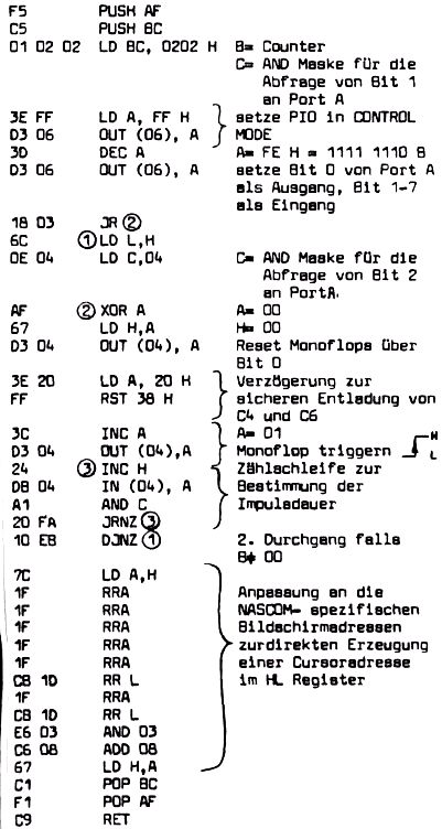 Start: 0D00 H Exit: Cursoradresse in HL alle anderen Reg. unverändert |
