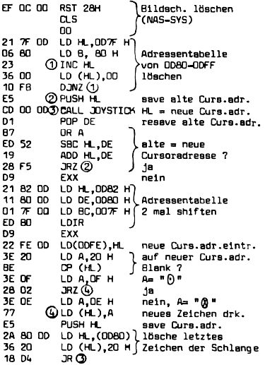 ruft Subroutine Joystick auf Start: 0D36 H Exit : RESET |