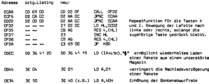 Die unten aufgeführten Änderungen beziehen sich auf das Spiel „Invasion“, veröffentlicht im Journal 2/80. Der Spielablauf wird – meiner Meinung nach – wesentlich belebter und attraktiver. Falls Interesse : ausprobieren !