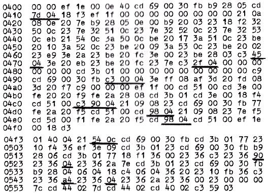 Start Spiel 0400 Start Stichwörter laden 04F3 Start Antw. auf Cass.speich. 04C6
