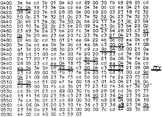 Bei Adresse 0C9B beginnt übrigends ein nützliches Unterprogramm, das Hexadezimalzahlen in Dezimalzahlen umrechnet. Es erwartet die Hex-Zahl im DE-Register und liefer das Ergebnis in den Registern A und HL ab.