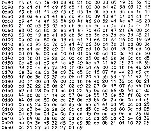 Das Rechnerprogramm ist zusammen mit den Unterprogrammen von 0C80 bis 0E37 gelistet und läuft mit Nasbug T2 .
