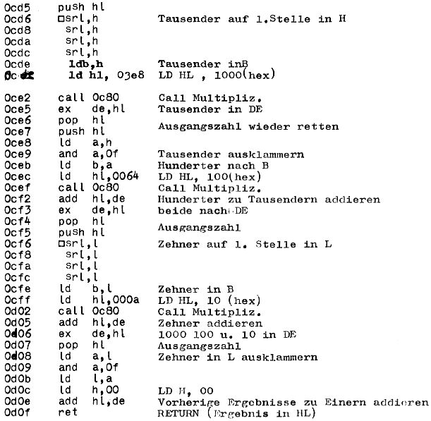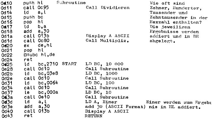 subroutine ‚dezimale anzeige einer hex zahl‘