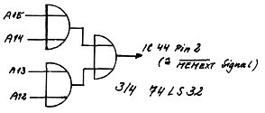 Mit den übrigen Gattern kann man das MEMEXT-Signal erzeugen.(Dann funktioniert der Monitor auch ohne RAM-Board.