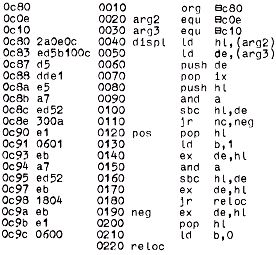 Sie starten den Relocator, der übrigens voll verschieblich und auch in EPROM speicherbar ist, im abgedruckten Beispiel bei C80, wobei Sie als Argumente die Originalstartadresse und die Zieladresse eingeben.