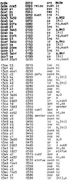 Dieses Programm läßt sich natürlich nur dann problemlos durchführen, wenn die Ursprungsprogramme durchsichtig sind und nicht zu viele direkte Sprünge enthalten. (Obwohl das Programmformat immer noch kleiner bleibt als bei TDL) .