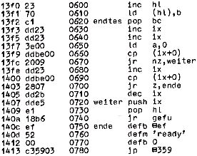 Nach Auffinden von 00 00 meldet der Relocator „Ready“ und springt zum Monitor zurück. Das Programm ist nun an gewünschter Stelle lauffähig. Sie können es von dort auch auf Cassette abspeichern (inklusive der Relocator- Informationen). Als Ausgangspunkt für weitere Verschiebung muß aber immer die Anfangsadresse verwendet werden, für die das Programm ursprünglich geschrieben wurde.