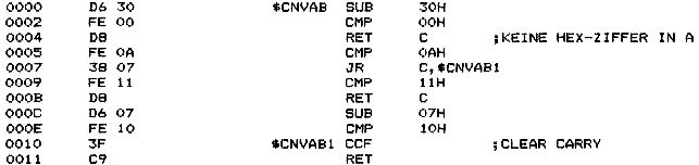 Die Subroutine $CNVAB konvertiert eine Hex-Ziffer vom ASCII- ins Binaer-Format