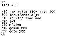 Um die Amplitudenwerte zu testen, setzen Sie in das Testprogramm für die Hüllkurvenformen in Zeile 310 einfach 1=8 (oder entsprechend 9 bzw. 10)ein.