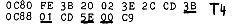 Dann wird der Text auf Bildschirm und UART ausgegeben. Natürlich könnte man das auch einfacher machen mit X-Befehl bei T4 und U-Befehl bei Nassys; aber die Adresse C80 ist eigentlich für ein Programm vorgesehen, das ASSCII in Baudot-Code umwandelt und ausgibt. Dieses Programm wird noch vervollständigt.