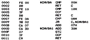 Die Subroutine $CNVBA konvertiert eine Hex-Ziffer vom Binaer- ins ASCII-Format.