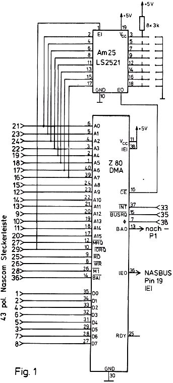 Der Schaltungsaufwand ist denkbar einfach. Außer dem DMA Baustein wird noch ein Decodierungs-IC