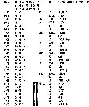Der folgende Programmteil dient nur zum Stellen und initialisieren der Uhr; er kann dann von anderen Programmen überschrieben werden.