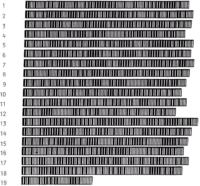 Für Leser, die bereits einen Barcode-Reader anschließen können: Probieren Sie zunächst aus, ob Sie das gedruckte Programm von Herrn Ploss ( im BYTE Format ) einwandfrei lesen können. Wenn ja, erübrigt sich das etwas aufwendigere Plotten der Programme(, das hier noch etwas schief geraten ist). Falls Sie den Plot einfacher zu lesen finden, werden wir in Zukunft weitere Programme im MC Format abdrucken.