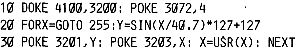 Mit folgendem Programm kann eine Sinuslinie gezeichnet werden, wenn die Graphik vorher mit einem Copy-Befehl gelöscht wird.