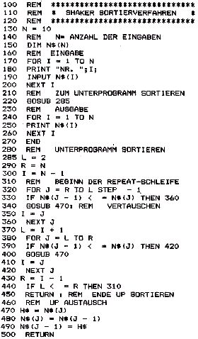 Eine kleine Verbesserung bietet der Shaker Algorithmus. Der Zeiger wandert abwechselnd von oben nach unten und dann umgekehrt über den Arrayinhalt.