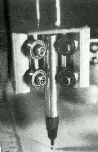 Der Tuschestift wird von einem Alu-Rohr gehalten. Eine eingeklebte Metallschraube läuft durch die Magnetspule.