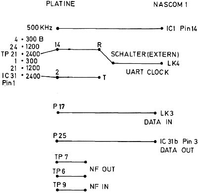 Theoretisch waeren auch noch andere Geschwindigkeiten moeglich gewesen, Die Erfahrung zeigte aber,dass 1200 oder gar 2400 Baud mit diesem Schaltungskonzept nicht realisierbar sind.
