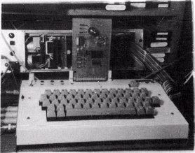 Hier nun ein Vorschlag zum Einbau einer 31-pol. Buchse nach DIN 41617 in ein Tastaturgehäuse. In Bild 3 sehen Sie die Platinen des Soundgenerators, eines FSK Modems (nach Elektor), einer 7-Segment-Anzeige und des MDCR-Interfaces von Herrn Lotter. Bild 2 zeigt, wie problemlos der Eprommer von Herrn Ploss eingeschoben werden kann, ohne störende Kabel. Schnell kann er gegen irgend eine andere Schaltung ausgetauscht werden, die über den selben Port angesteuert wird.