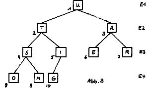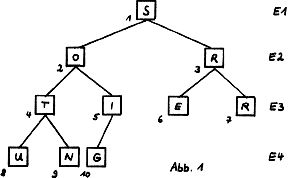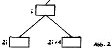 Jedem Element werden nun 2 (daher binär) unter ihm liegende Elemente zugeordnet. Dreht man Abb.1 auf den Kopf, erhält man das Bild eines Baumes. Behält man die laufende Numerierung des Feldes bei, gehören zu einem Feldinhalt i („Vater“) die Felder 2i und 2i + 1 („Söhne“).