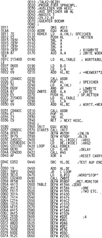Die Hauptprogramme benutzen übrigens immer die zu Anfang beschriebenen Subroutinen an den angegebenen Adressen. Diese sind im Prinzip voll verschieblich.