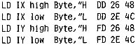 Diese Manipulation ist nicht im Manual vorgesehen, auch der Assembler versteht sie nicht; aber sie läuft auf den meisten Z80 Chips und leistet gute Dienste, wenn man zusätzliche Register benötigt.