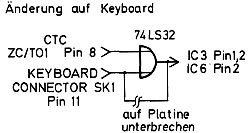 Benoetigt wird dazu ein CTC, durch den die Spalten gepulst werden, und ein OR-Gatter, damit entweder der CTC oder die CPU den „KBD Counter Clock“ takten kann.