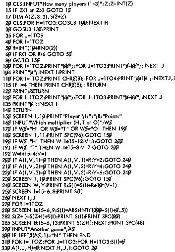 P.S. Die Subroutinen zum Zeichnen der Spielfelder sind sehr abhängig von den Leerzeichen in den PRINT-Statements. Deshalb habe ich die Blanks mit „b“ dargestellt.