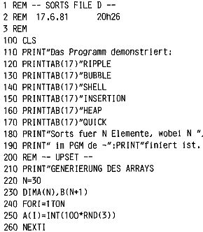 Folgendes Programm faßt die häufigsten Sortieralgorithmen zusammen und stellt sie gegenüber.