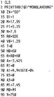 Sie befinden sich auf einer Mondexpedition und muessen die Kapsel sicher auf dem Mond aufsetzen. Als Kommandant der Mondfaehre muessen Sie bestimmte Kommandos an das Navigations-System geben. Der Bord-Computer wird Ihnen dabei laufend die wichtigsten Daten anzeigen, die Sie fuer die Navigation benoetigen.