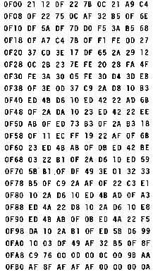 600 DATA2.5,6.4,0,2.5,2.3,0,2.5,2.3,0 610 DATA2.5,2.3,3.7,9.4,2.3,0,9.4,2.3,3.7 620 DATA9.4,6.4,0,9.4,6.4,3.7,2.5,6.4,0 630 DATA2.5,6.4,3.7,2,6.9,3.5,9.9,6.9,3.5 640 DATA9.9,4.35,5,9.9,1.8,3.5,2,1.8,3.5 650 DATA2,4.35,5,2,6.9,3.5 660 :FORJ=0TONP:DOKE3631,P(J) 670 U=USR(0):FORI=1TO30:NEXTI,J 680 :FORJ=2TONP:DOKE3631,P(J) 690 U=USR(0):FORI=1TO30:NEXTI,J:GOTO680 700 :RESTORE730:FORI=3584TO3668STEP2:READX 710 DOKEI,X:NEXT:DOKE4100,3548:U=USR(0) 720 DOKE4100,3614:RETURN 730 DATA4385,8718,3195,20769,8718,3189,18125 740 DATA-14066,14848,3667,8359,-8441,-12163 750 DATA16638,-16329,10538 760 DATA32268,24574,9512,1,-8956,33 770 DATA-760,33,-8800,86,24317,-8960,115,29437 780 DATA2816,9181,9213,-20104,-5344,12975,3667 790 DATA16073,12801,3667,30409,0,8319