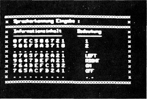 Die so jeweils eingegebenen Bedeutungen und Informationsinhalte werden im Speicherbereich 10B0H…1800H abgelegt. Ein Informationseinheit benötigt bei der Abspeicherung 10 Bytes und es können vom Programm her gesehen maximal 100 Info- Inhalte abgespeichert werden.