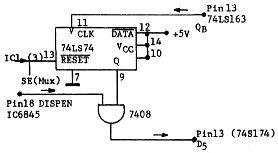 Es wird ein zusätzlicher 74LS74 und ein „And-Gate“ benötigt. Mit dieser Schaltung wird verhindert, daß während eines Speicherzugriffs durch die CPU ein gleichzeitiges Auslesen des Speichers auf den Bildschirm möglich ist, sodaß undefinierte Zeichen – „Schnee“ – unterbleiben. Ein ähnlicher Vorschlag wurde im letzten Heft bereits gemacht, dürfte jedoch nicht ganz so wirkungsvoll sein.