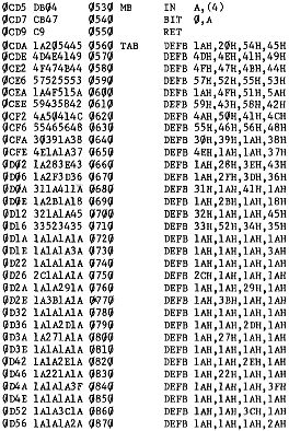 Dazu wird in Zeile 640 das Register B mit 7 geladen. Die Zeilen 810 bis 860 können dann wegfallen. Der Wert in Zeile 670 und 730 wird auf 8 erhöht, und die Zeilen 1470 bis 1500 fallen gleichfalls weg.