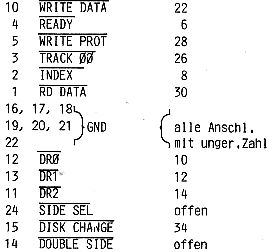 Seien Sie beim Anschluß des Laufwerkes an das Netzteil vorsichtig: mein Laufwerk döst nun in den ewigen Jagdgründen, weil ich die Anschlüsse nicht nachgemessen habe. Mir lagen Unterlagen zu einem neueren Laufwerk vor, auf dem die Steckeranschlüsse vertauscht sind. Beim Anlöten des Steckers lagen nun 12V an den TTL-Bauteilen. Die ertrugen das 5 Minuten, dann begann die Sache zu stinken. Messen Sie also vor dem Einschalten nach, ob die TTL-ICs auch an der richtigen Leitung hängen!