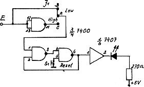 Auf diese Weise konnte ich einen gewichtigen Fehler im Programm beseitigen. Vielleicht kann Ihnen die Schaltung auch einmal beim Verfolgen ähnlicher Signale dienlich sein. Durch Umstecken eines Jumpers läßt sie sich auch durch positive Signale ansteuern.