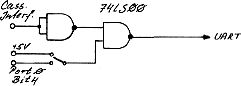 Der ganze Trick dabei ist, daß der Execute-Befehl durch das zusätzliche fehlerhafte Zeichen mit ERROR abgebrochen wird. Diese Methode funktioniert natürlich nur bei Programmen, die kürzer als 13 KByte sind, Durch folgende kleine Schaltung kann man aber auch hardwaremäßig da Starten des Programms verhindern: