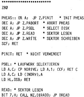 entsprechend Sektornummer. Die Diskette besteht aus vielen 256-Bytes langen logischen Sektoren. Die Gruppengroesse umfasst 4 Sektoren. Bei CP/M kompatieblen Diskettenformaten muss der Skew Faktor berueckschtigt werden !
