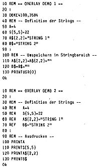 Overlay erlaubt das Nachladen von BASIC Programmen mit Autostart, ohne daß Variable verloren gehen. (Ähnlich wie in Fortran),