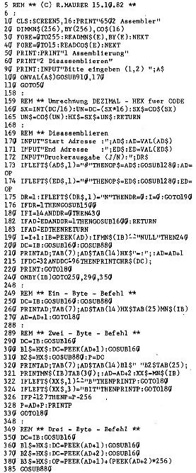 Im Februar haben wir auf die Existenz eines 6502-Assemblers hingewiesen. Inzwischen wurde einiges Interesse aus dem Leserkreis geäußert, sodaß wir das Programm hiermit abdrucken.
