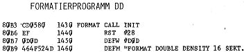 Für diesen minimalen Aufschub der Enttäuschung (die man sich sowieso ersparen könnte, wenn man weiß, daß die Diskette in DD formatiert ist) wird aber ein aufwendiges Formatierprogramm benötigt, das die erste Spur mit 128 Byte- Sektoren SD und den Rest in 256 Byte- Sektoren DD beschreibt, Der gleiche Aufwand muß beim Systemgenerieren (Sysgen), d.h. beim Abspeichern des Betriebssystems auf den ersten 4 Spuren getrieben werden.