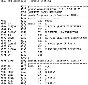Die einzige Routine, die ein Nassys-Unterprogramm verwendete (CTDEL Verzögerungsroutine) wurde durch ein Unterprogramm ersetzt, das die Routine DELAY von PHEAS benutzt. Dadurch ist PHEAS von jedem Betriebssystem unabhängig geworden und kann auf jedem Rechner laufen.(Zeile 1220).