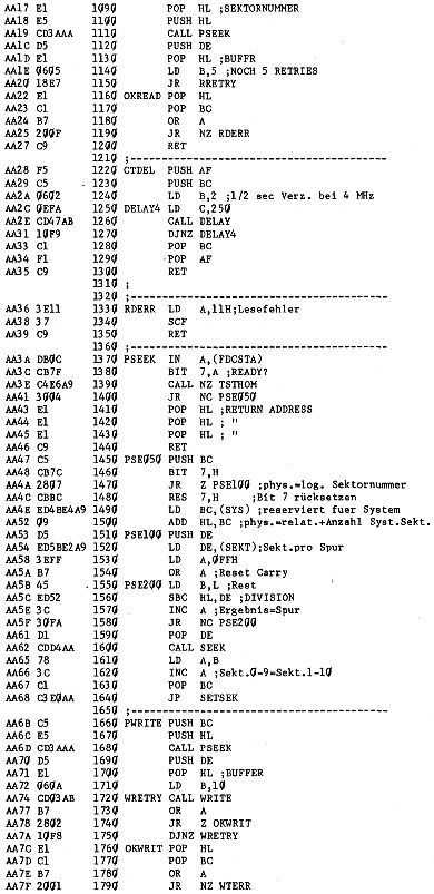 Beim Durchschauen des Double Density Formatierprogrammes werden Sie feststellen, daß die Sektortabelle in Zeile 2910 geändert wurde.